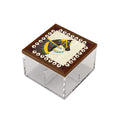 This box is the smallest box within our range of boxes. It is available in two different color combinations. This piece is a joy for accessories, food items, and any small items that can easily get lost. The plexi-glass base comes with movable dividers.