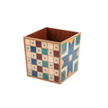 This distinctively designed bin is square in its shape. It holds four different patterns, one on each side. This is designed for it to be able to face a different side at any time. It is made using solid Walnut and Maruqtery patterns with Italian Veneers.
