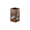This distinctively desgined bin is square in its shape. It holds one patterns that continues onto all four sides. This is designed for it to be able to face a different side at any time. It is made using solid Walnut and Marquetry patterns with Italian Veneers.