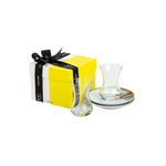 Featuring a classic silhouette, these sleek glass teacups sit atop white porcelain saucers, adorned with a contemporary motif of one of the Arabian Peninsula’s most beloved birds – the Bulbul. Eye-catching and elegant, the set will add a touch of charm to any occasion. The pair will arrive beautifully presented in a signature Silsal gift box, complete with satin ribbon and a gift card.